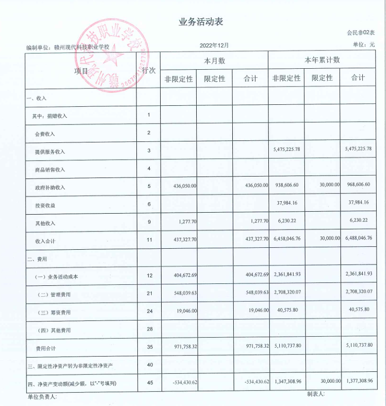 单位名称:赣州现代科技职业学校 单位:元
