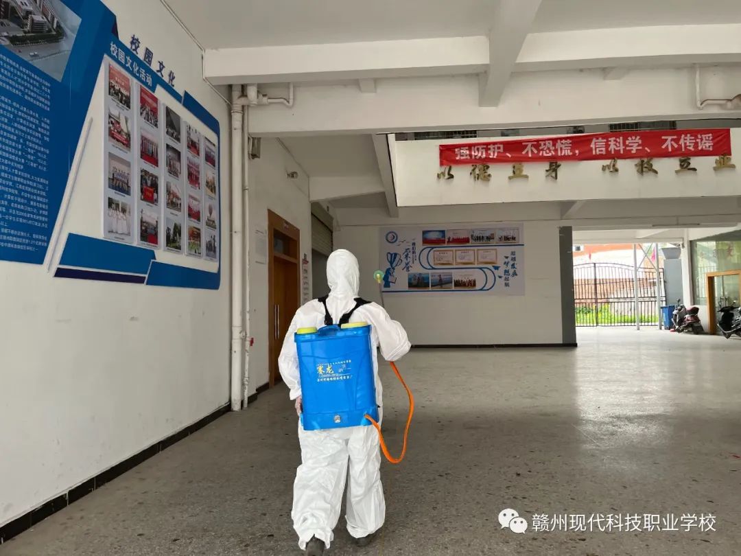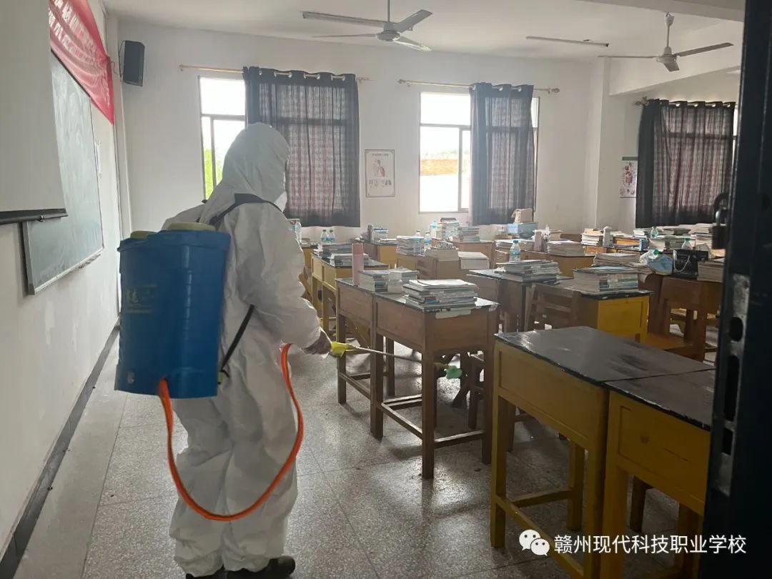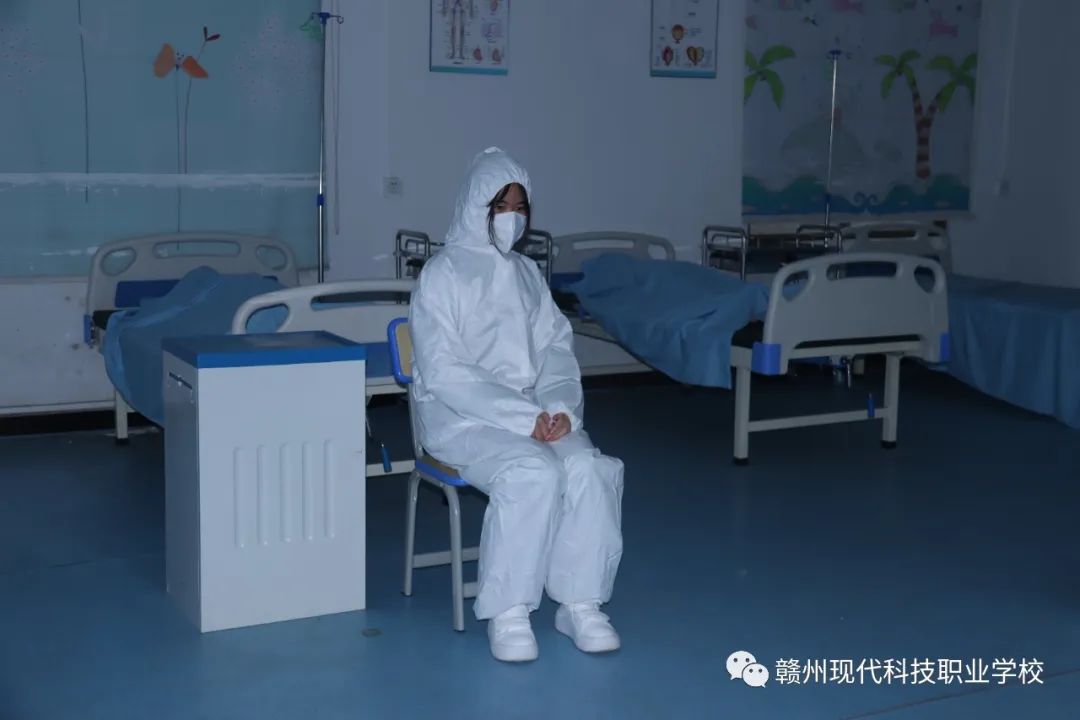 (场景模拟)学校突然接到赣州市中医院来电,昨日全员核酸检测中有一组混检人员中检测出阳性。 随即触发学校疫情防控应急响应。按照学校疫情防控突发处置有关预案的规范流程,全程模拟了响应启动、信息报告、封闭管理、流调、体温检测、转运、消毒消杀等全过程、全要素。