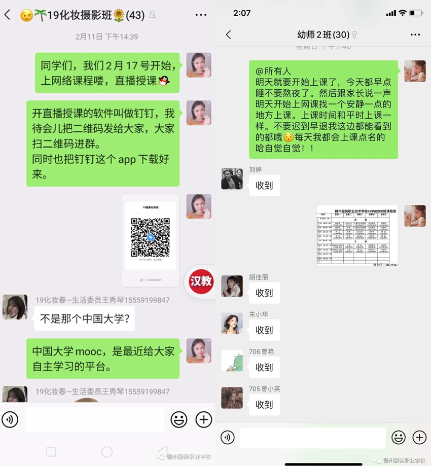 赣州现代科技职业学校 停课不停学 钉钉在线直播中