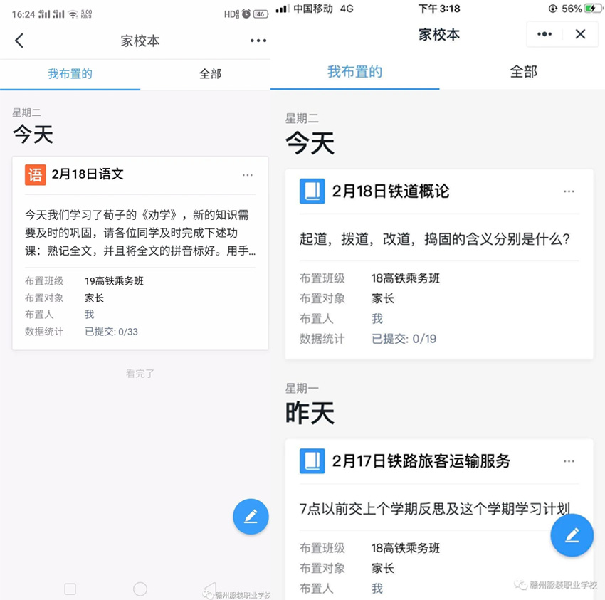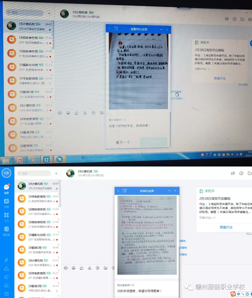 病毒无情人有情,离校不离教。赣州现代科技职业学校的教师们整装待发、谨记指示,做到在家隔离,防控疫情,同时使孩子们能够居家完成学习任务,用实际行动助力学生们的学业进步。正所谓福祸相依,他们也不忘把握契机,掌握好这轮新的教学方式,推进个人能力和我校教学水平的共同提升。赣州现代科技职业学校的全体师生无论面临何种困难,都会团结一致!为了学生,为了我们的家园,我们一起努力!我们的明天更美好。