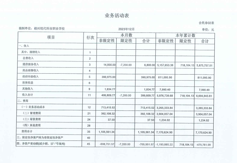 单位名称:赣州现代科技职业学校 单位:元
