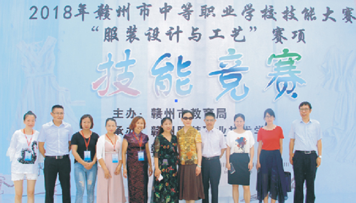 2018年6月,赣州市政府郭素芳副市长(右五)、市教育局邓明局长(右四)、市委农工部、市财政局、赣南日报社等领导莅临我校市技能赛现场指导工作